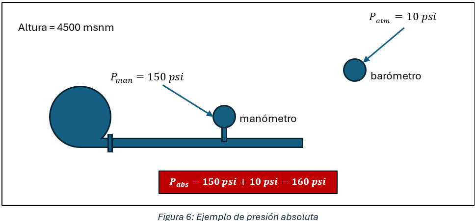 Incluye la presión atmosférica existente en el ambiente donde se realiza la medición. La presión se mide con respecto al cero absoluto. (Ver Figura 5)
