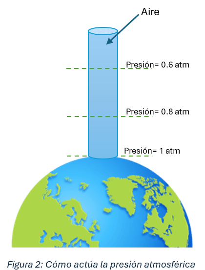 Así como el agua en el mar ejerce presión sobre todo lo que está sumergido (a mayor profundidad, más presión), la enorme columna de aire que está sobre nuestras cabezas también tiene peso y nos está «aplastando» todo el tiempo. A esto le llamamos presión atmosférica.